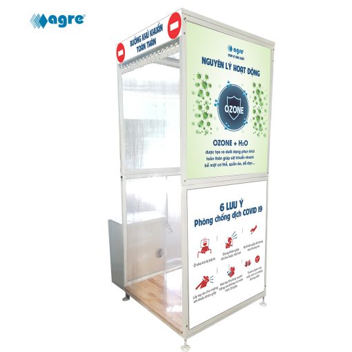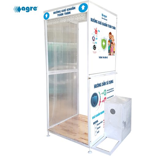 BUỒNG KHỬ KHUẨN TOÀN THÂN có công dụng tiêu diệt virus, vi khuẩn gây bệnh bám trên bề mặt quần áo, vật dụng … trong thời gian ngắn từ 20-30 giây; thích hợp sử dụng cho những nơi đông người như trụ sở văn phòng, xưởng sản xuất, trạm dịch vụ….
